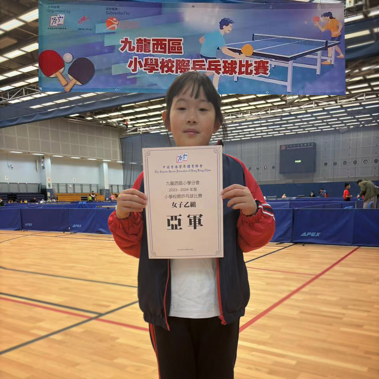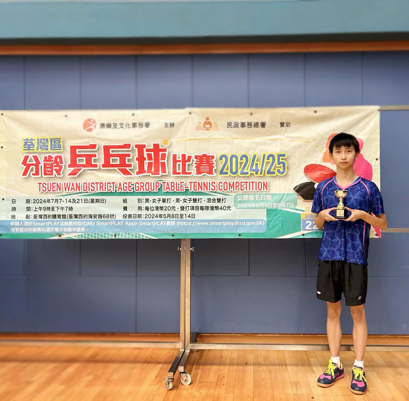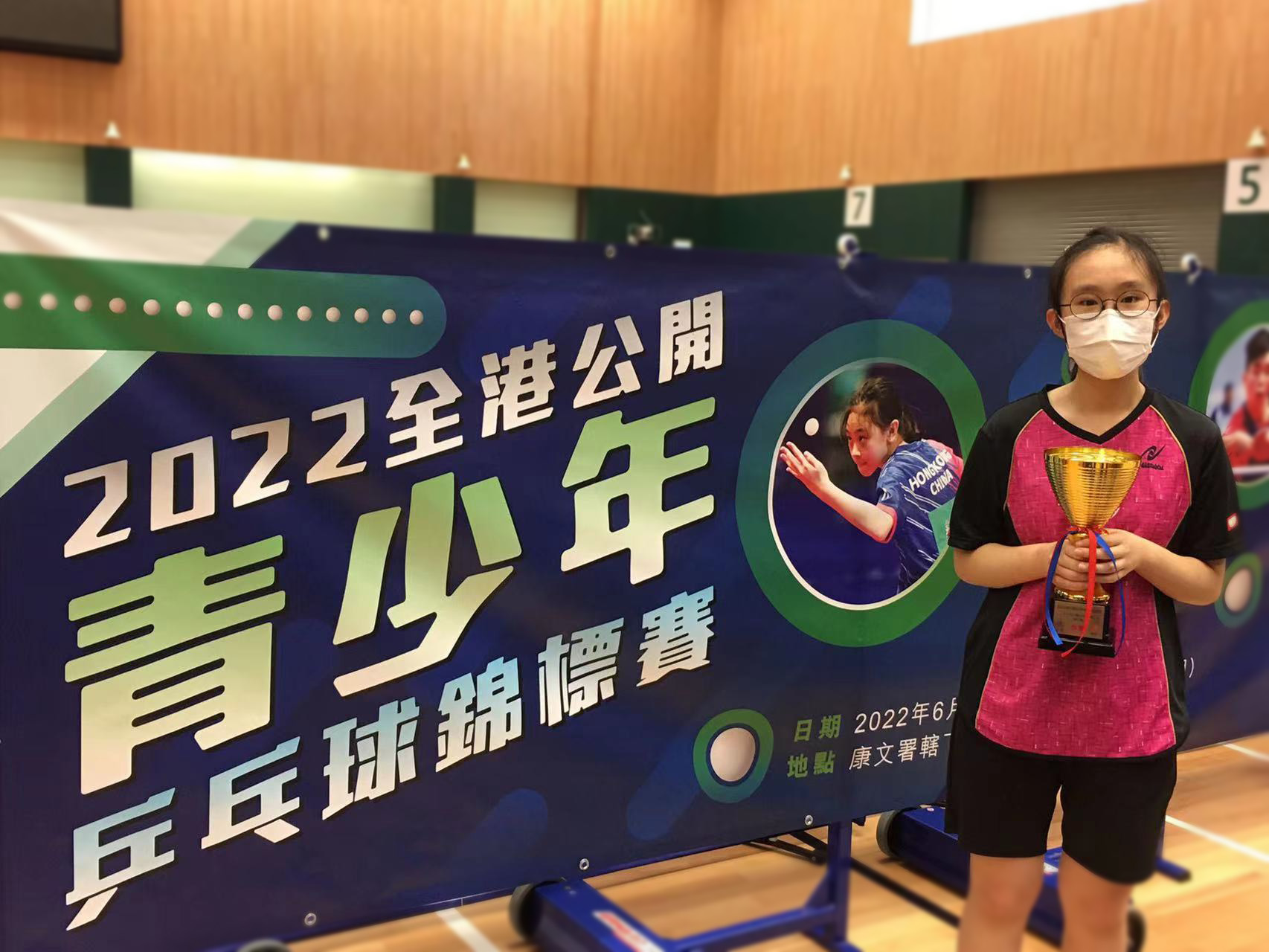 學員謝芷柔,在2021年灣仔區分齡乒乓球賽中,獲U14女子單打冠軍。